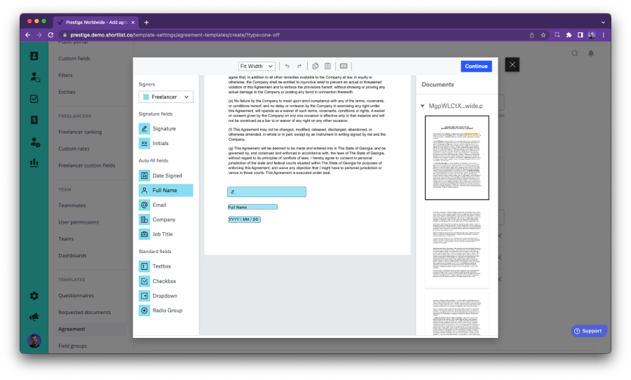 Where it gets really interesting: At scale. When onboarding dozens or hundreds of new contractors, you can rest assured knowing that all legal documents are up-to-date and configured the way you need them.